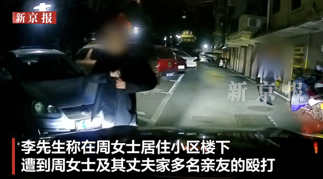 李先生称,11月27日,他去取周女士还的钱,在周女士居住的小区楼下遭到周女士及其丈夫家多名亲友殴打。